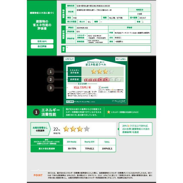 | エネルギー消費性能 | ★★★(削減率20%達成) | 断熱性能 | 5段階/7段階中 |